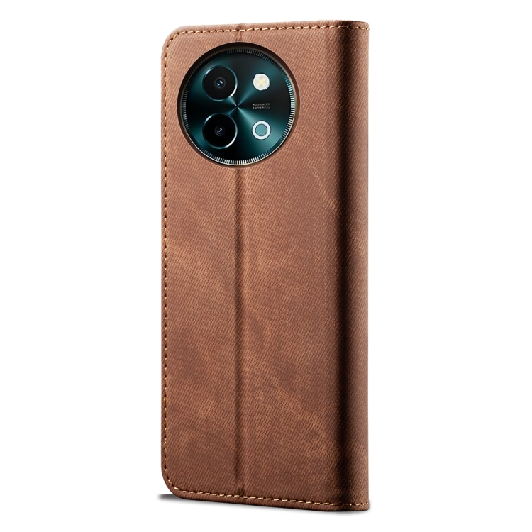 Para Vivo Y38 5G Global Denim Texture Funda de Cuero con Tapa para Teléfono (Marrón)