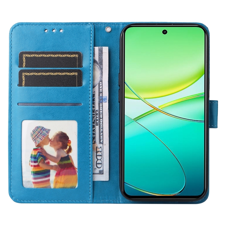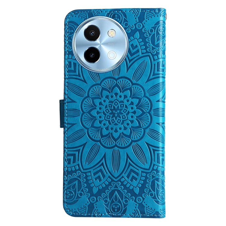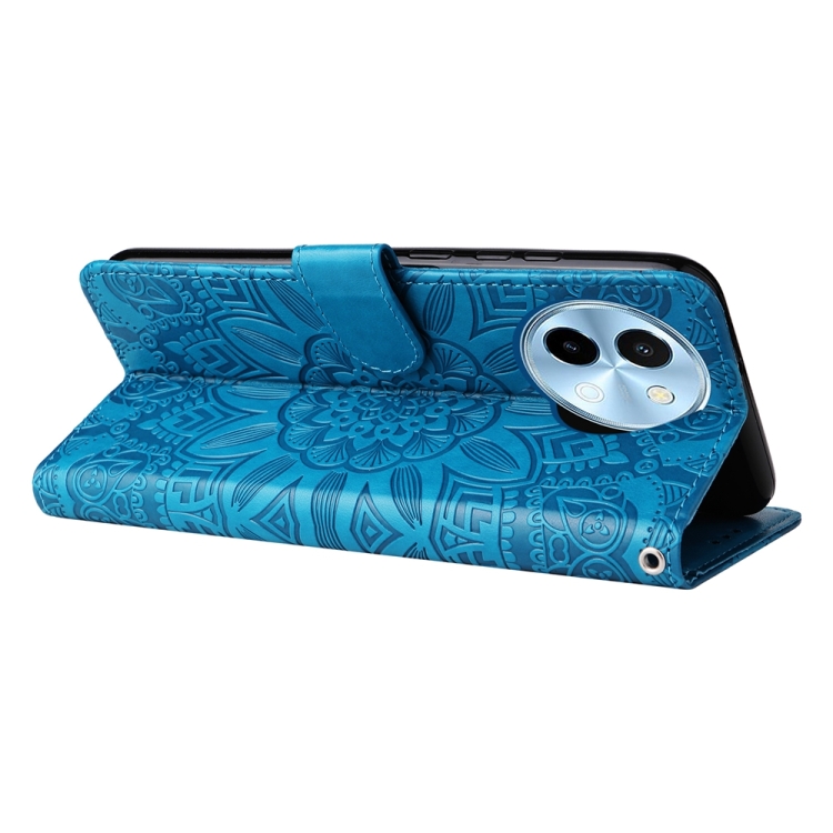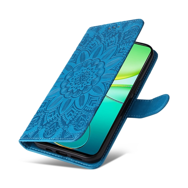 Para Vivo Y38 5G / T3X 5G Funda para Teléfono de Cuero con Girasol En Relieve Global (Azul)