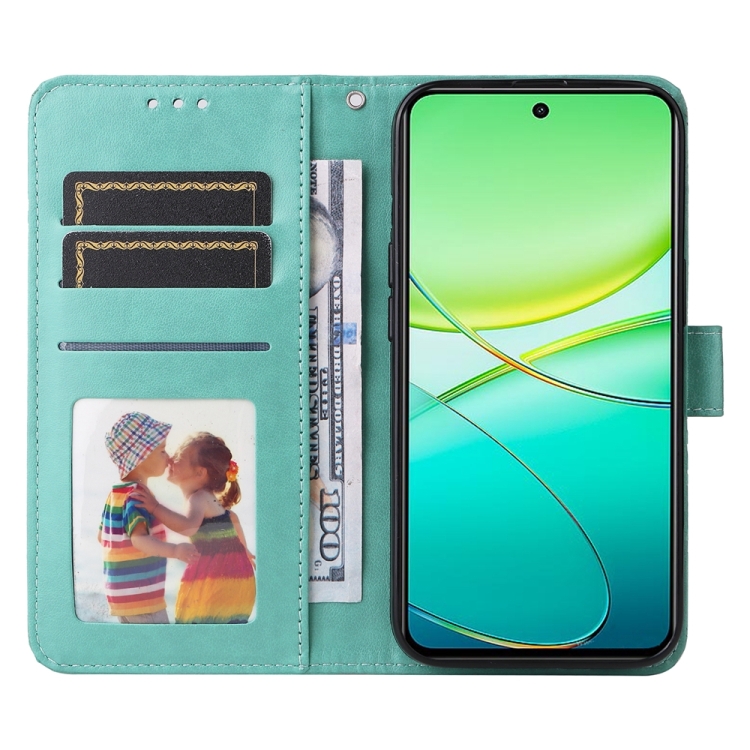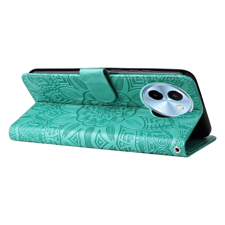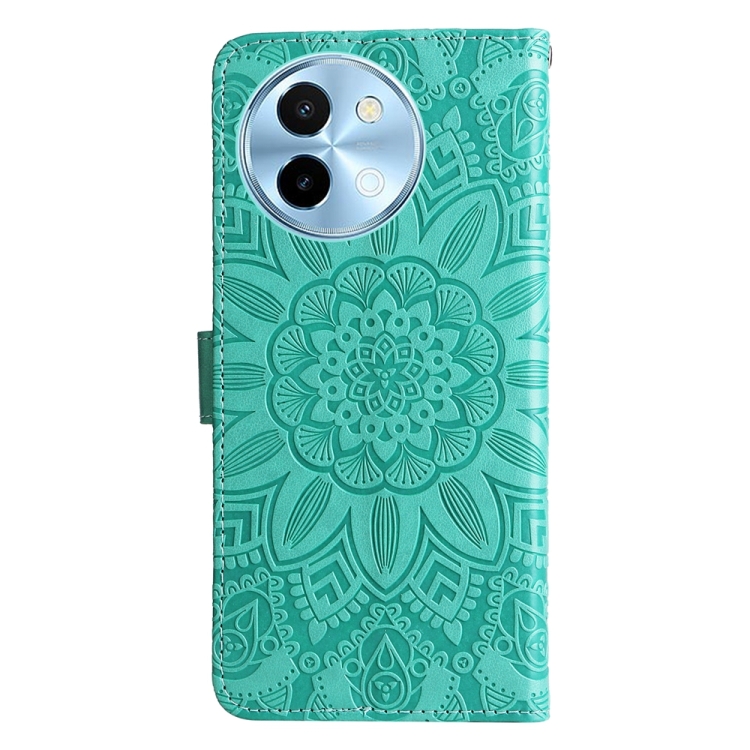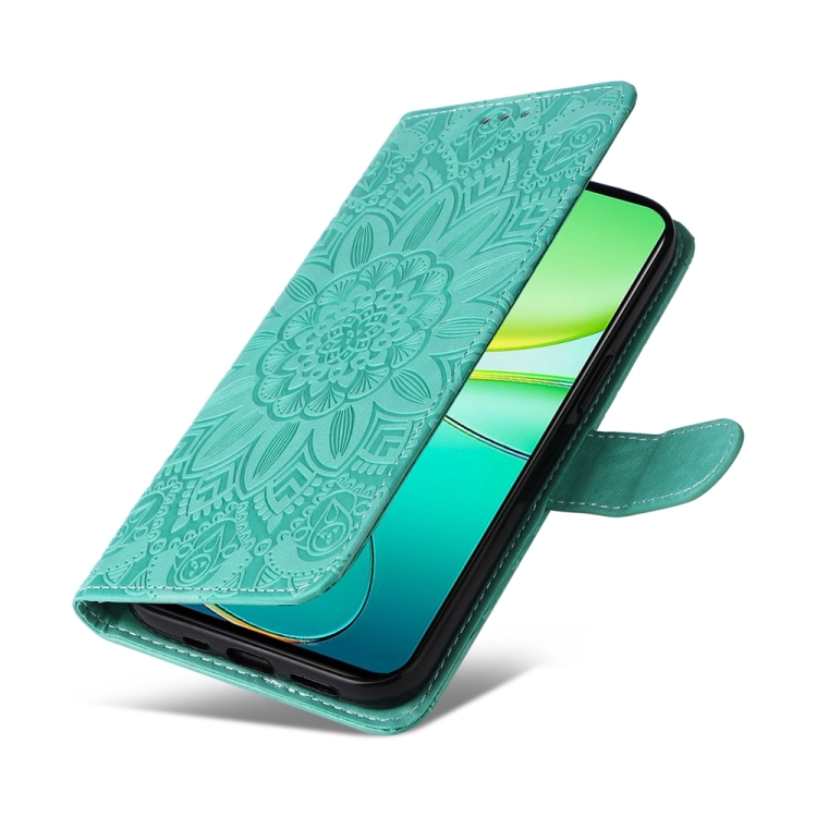 Para Vivo Y38 5G / T3X 5G Funda para Teléfono de Cuero con Girasol En Relieve Global (Verde)