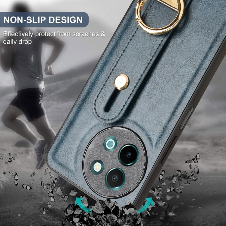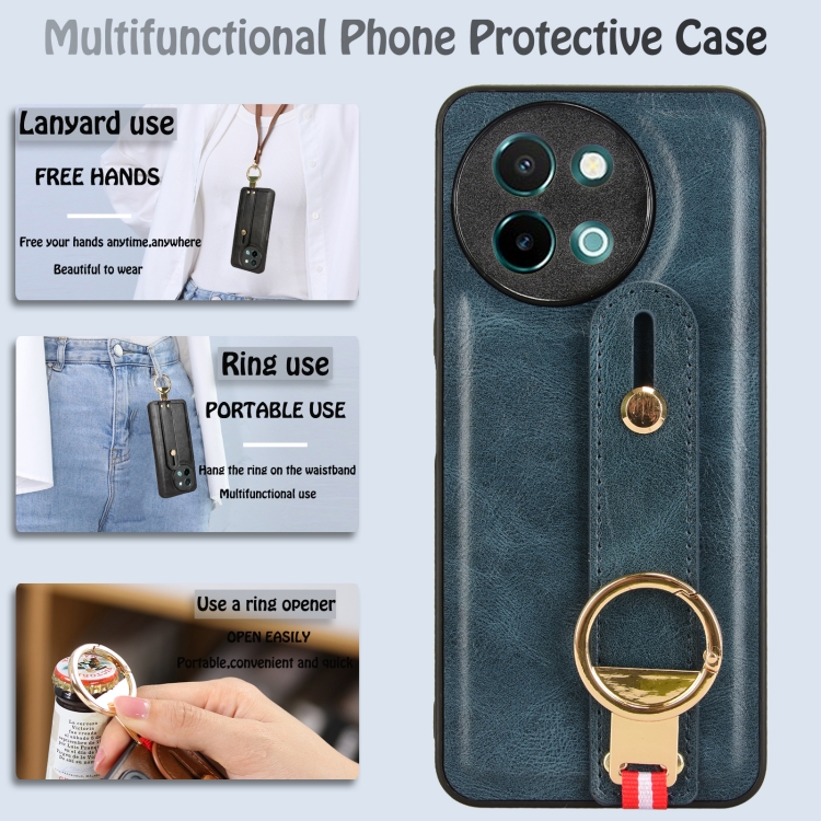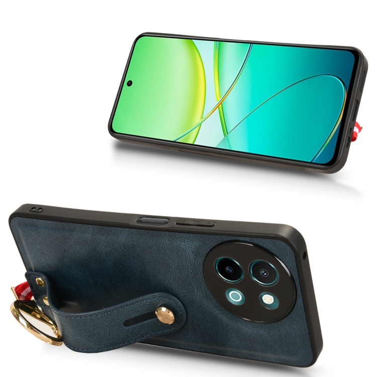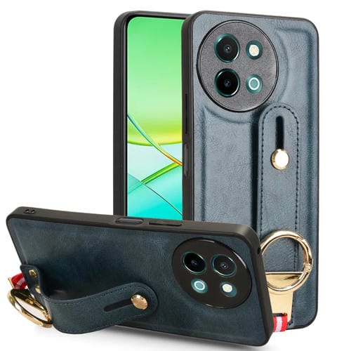 Para Vivo Y38 5G / Y200I 5G Funda Trasera de Cuero para Teléfono con Pulsera (Azul)
