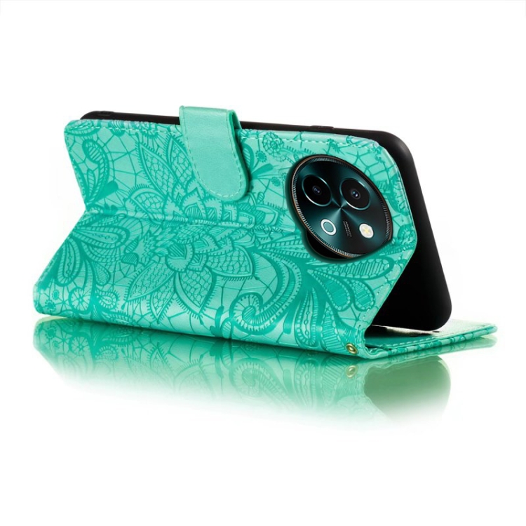 Para Vivo Y38 Funda para Teléfono de Cuero con Tapa y Estampado de Flores de Encaje (Verde)