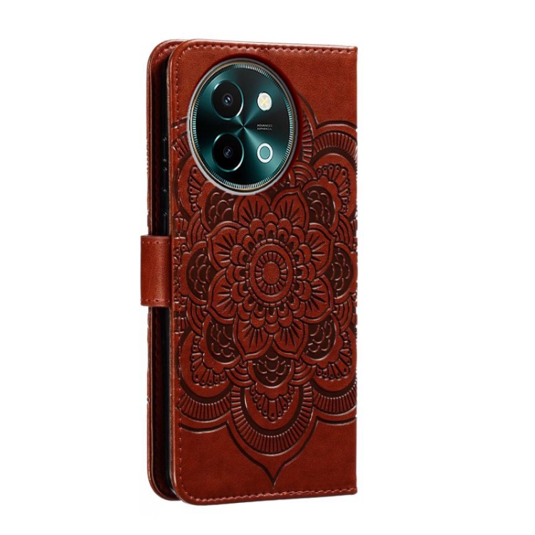 Para Vivo Y38 Sun Mandala Funda de Cuero para Teléfono con Patrón En Relieve (Marrón)