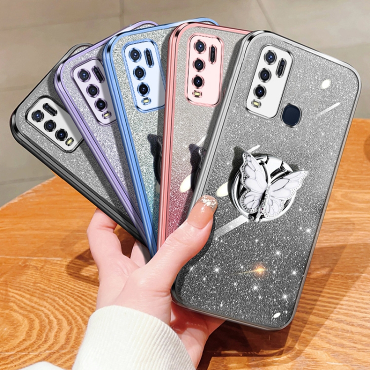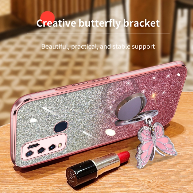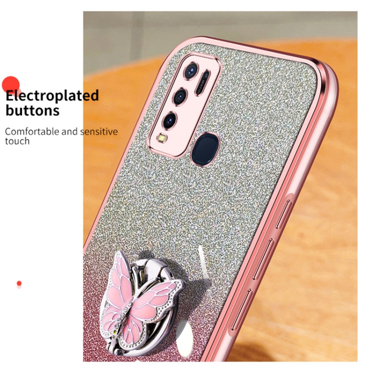 Para Vivo Y50 Funda para Teléfono de TPU con Soporte de Mariposa con Brillo Degradado Plateado (Rosa)