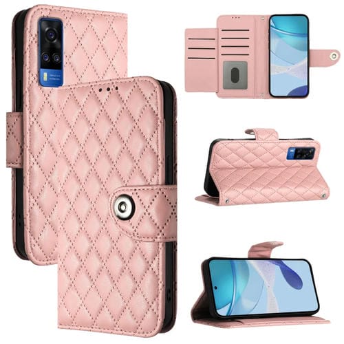 Para Vivo Y51 2020 India / Y31 India Funda para Teléfono con Tapa de Cuero con Textura Rómbica y Cordón (Rosa Coral)