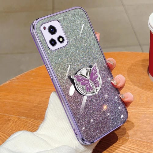 Para Vivo Y52S Estuche para Teléfono de TPU con Soporte de Mariposa con Brillo Degradado Plateado (Púrpura)