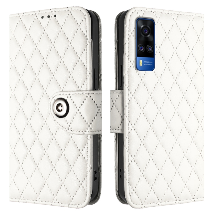 Para Vivo Y53S 5G / Y51A / Y33 Funda para Teléfono con Tapa de Cuero con Textura Rómbica y Cordón (Blanco)