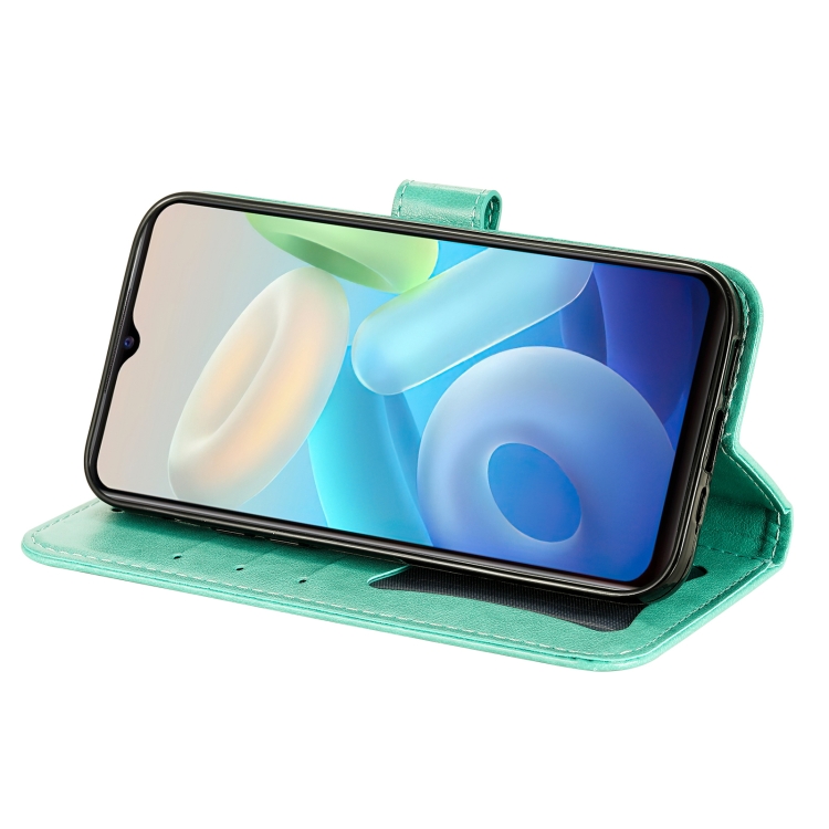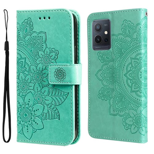 Para Vivo Y55 5G / Y75 5G / T1 5G 7-Petal Flores Patrón de Relieve Funda de Cuero de Flip Horizontal (Verde)