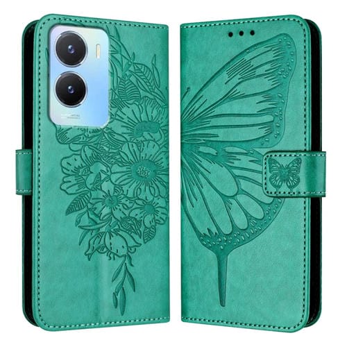 Para Vivo Y56 5G/Y16 4G/Y02S 4G Funda para Teléfono de Cuero con Mariposa En Relieve Global (Verde)