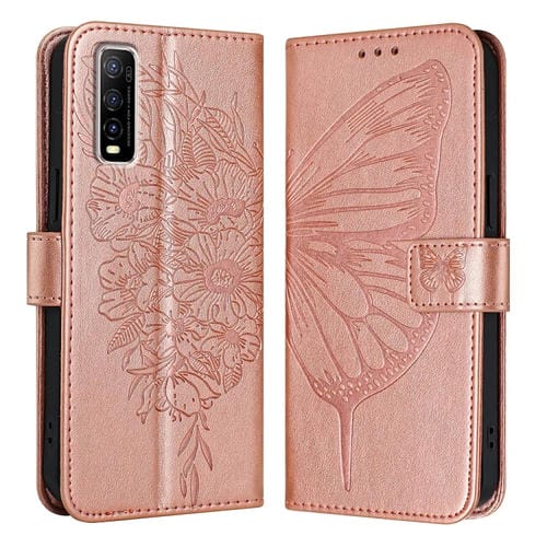 Para Vivo Y70S Funda de Cuero con Mariposa En Relieve (Oro Rosa)