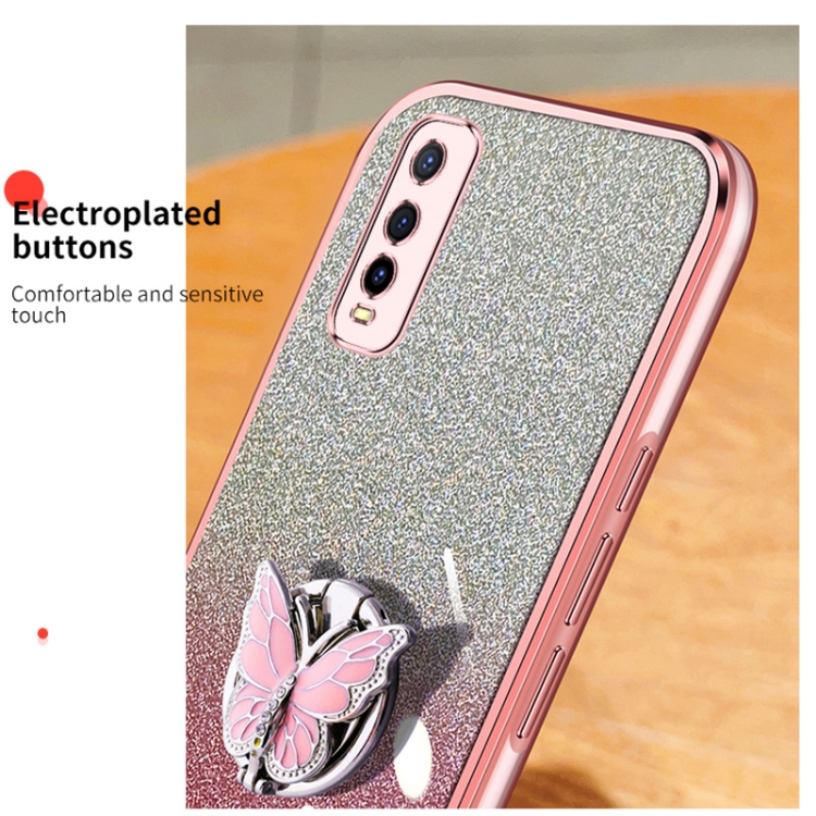 Para Vivo Y70S Funda para Teléfono de TPU con Soporte de Mariposa con Brillo Degradado Plateado (Rosa)