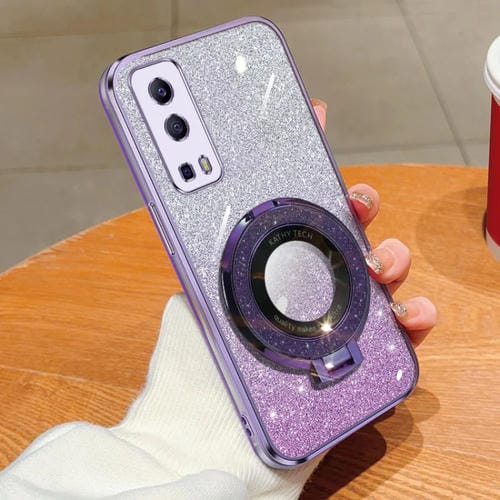 Para Vivo Y72 5G / Iqoo Z3 5G Estuche para Teléfono de TPU con Soporte Redondo y Brillo Degradado Plateado (Púrpura)