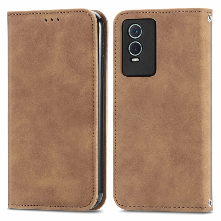Para Vivo Y76S, Retro, Piel, Funda de Cuero con Flip Magnético (Marrón)