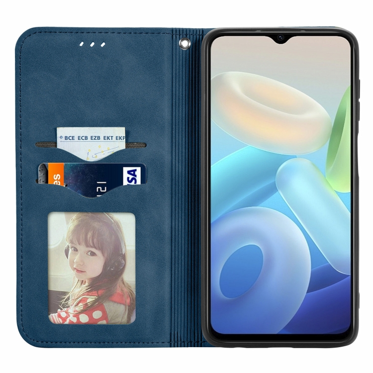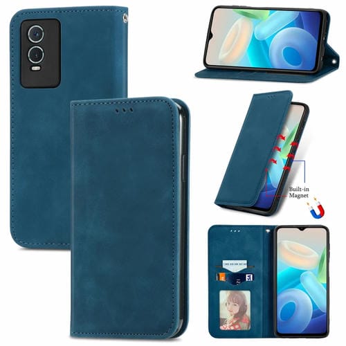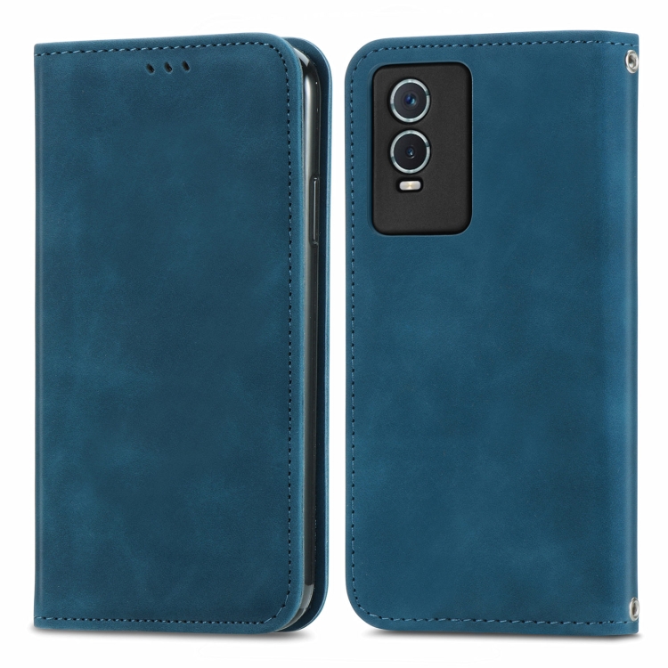 Para Vivo Y76S Retro Piel Siente Funda de Cuero con Flip Magnético (Azul)