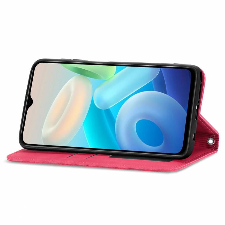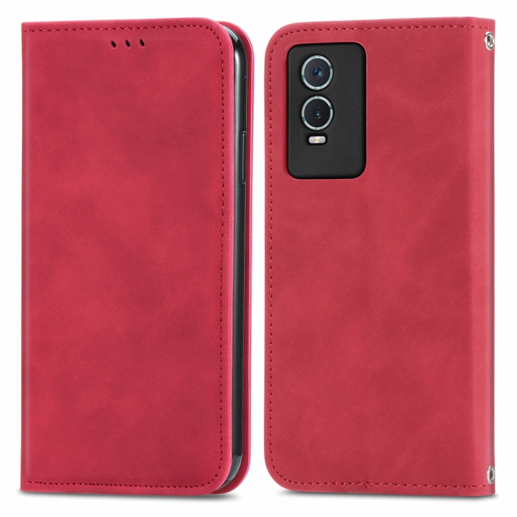 Para Vivo Y76S Retro Piel Siente Funda de Cuero con Flip Magnético (Rojo)