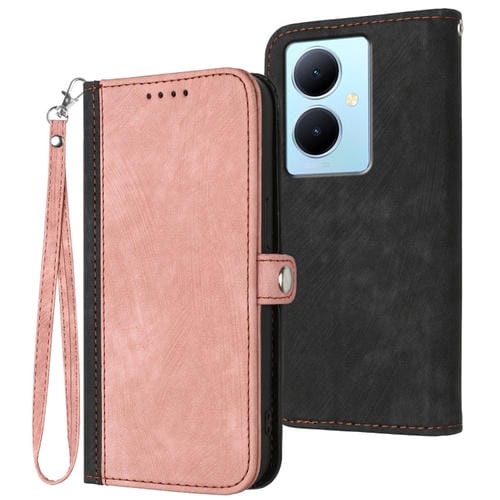 Para Vivo Y78 + 5G Global / Y78 5G Global Hebilla Lateral Correa de Mano Doble Funda de Cuero para Teléfono (Rosa)