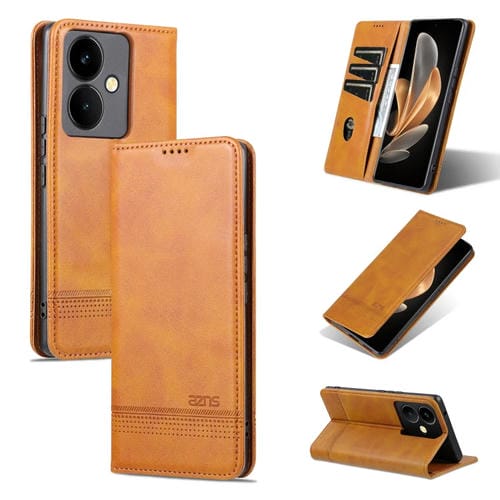 Para Vivo Y78 + / Y78 Global Azns Funda de Teléfono de Cuero con Textura de Becerro Magnético (Marrón Claro)