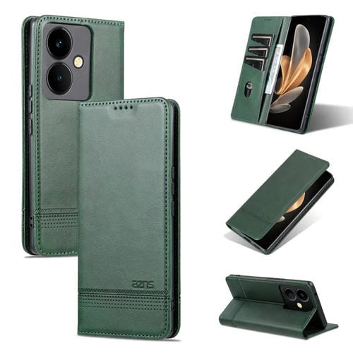 Para Vivo Y78 + / Y78 Global Azns Funda de Teléfono de Cuero con Textura de Becerro Magnético (Verde Oscuro)