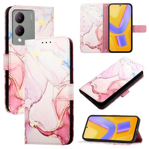 Para Vivoy Y17S 4G Global / Y17S 5G India Pt003 Funda de Cuero con Tapa con Patrón de Mármol (Oro Rosa)