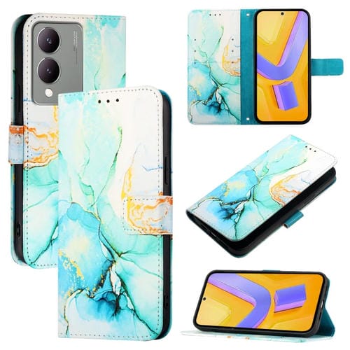 Para Vivoy Y17S 4G Global / Y17S 5G India Pt003 Funda de Cuero con Tapa con Patrón de Mármol (Verde)