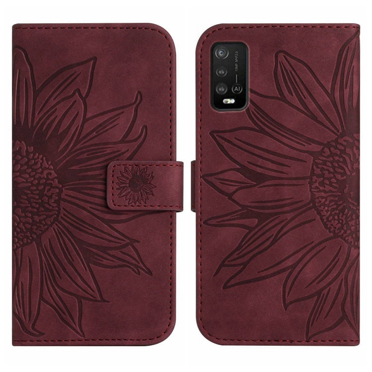 Funda de Cuero con Tapa para Wiko Power U10 U20 Skin Feel Sun Flower con Cordón (Rojo Vino)