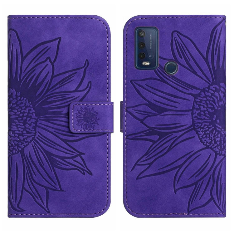 Funda Flip de Cuero Wiko Power U30 Skin Feel con Cordón y Diseño Sun Flower (Morado Oscuro)