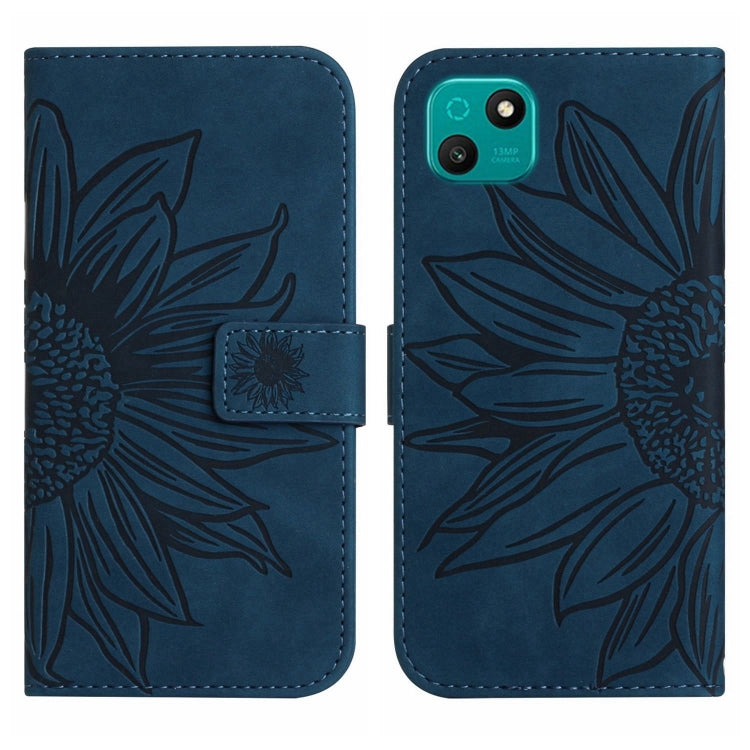 Funda Flip de Cuero Wiko T10 Skin Feel Sun Flower con Cordón (Azul Tinta)