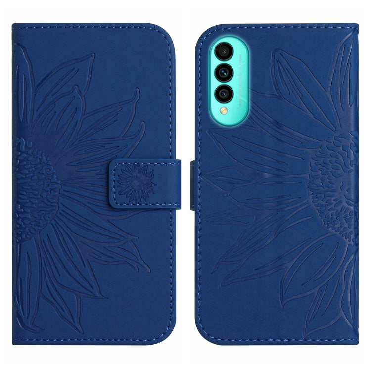 Funda de Cuero Flip para Wiko T50 Skin Feel con Cordón (Azul Oscuro) y Estampado Sun Flower