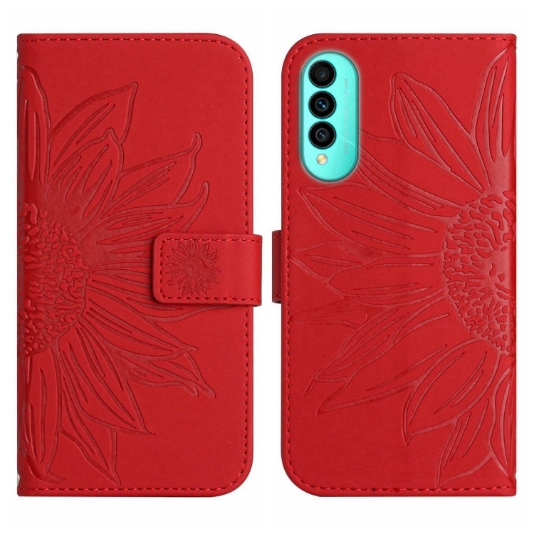 Funda de Cuero Flip para Wiko T50 con Cordón y Diseño Sun Flower (Rojo)
