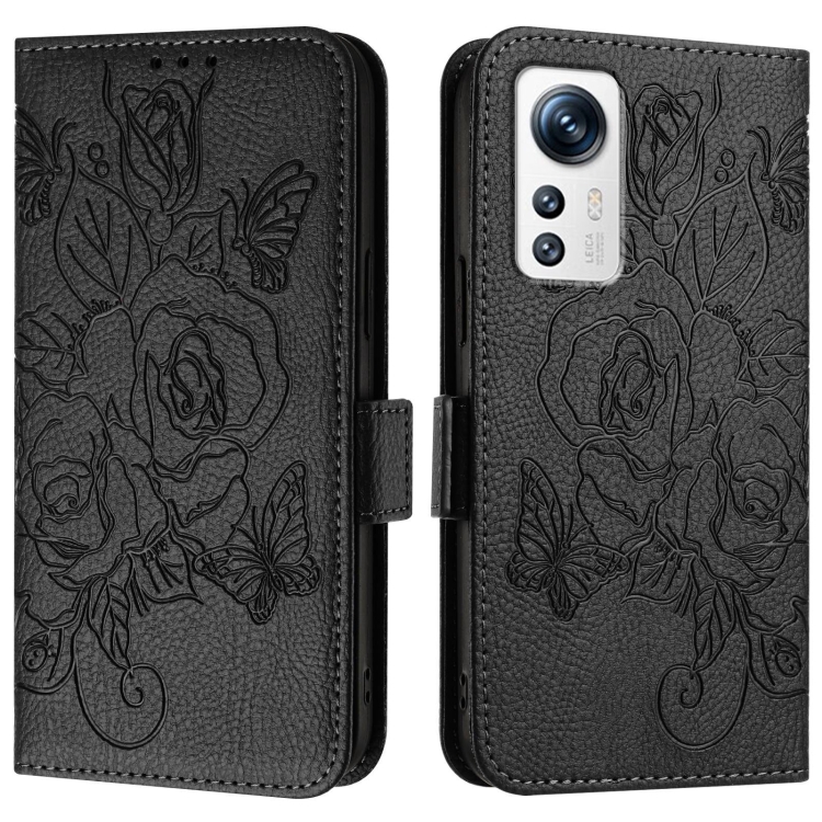 Para Xiaomi 12 5G / 12X 5G / 12S 5G Funda de Cuero Antirrobo Rfid con Relieve Rosa (Negro)