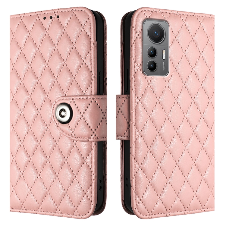 Para Xiaomi 12 Lite Funda para Teléfono de Cuero con Tapa con Textura Rómbica y Cordón (Rosa Coral)
