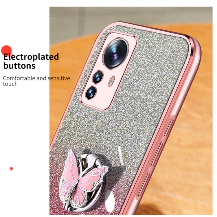 Para Xiaomi 12 Pro Funda para Teléfono de TPU con Soporte de Mariposa con Brillo Degradado Plateado (Negro)