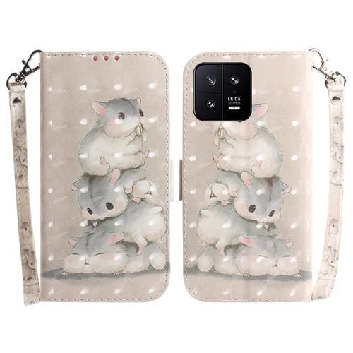 Para Xiaomi 13 5G Estuche para Teléfono de Cuero con Tapa Horizontal de Color 3D (Ardillas)