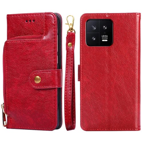 Para Xiaomi 13 Funda de Cuero con Cremallera para Teléfono (Rojo)