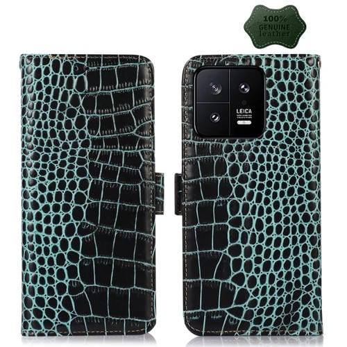 Para Xiaomi 13 Funda de Teléfono de Piel de Vaca con Capa Superior de Cocodrilo (Verde)