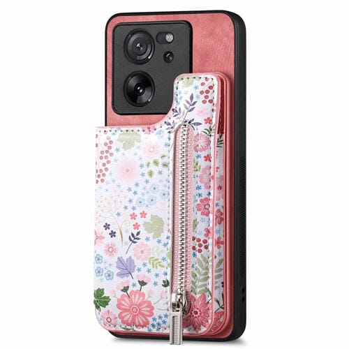 Para Xiaomi 13 Funda Trasera para Teléfono con Billetera con Cremallera Pintada Retro (Rosa)