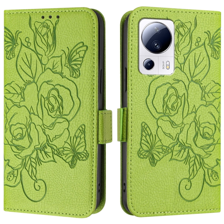 Para Xiaomi 13 Lite 5G / Civi 2 Funda de Teléfono de Cuero Antirrobo Rfid con Relieve Rosa (Verde)
