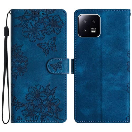 Para Xiaomi 13 Pro Cherry Blossom Butterfly Skin Feel Funda para Teléfono de Pu En Relieve (Azul)