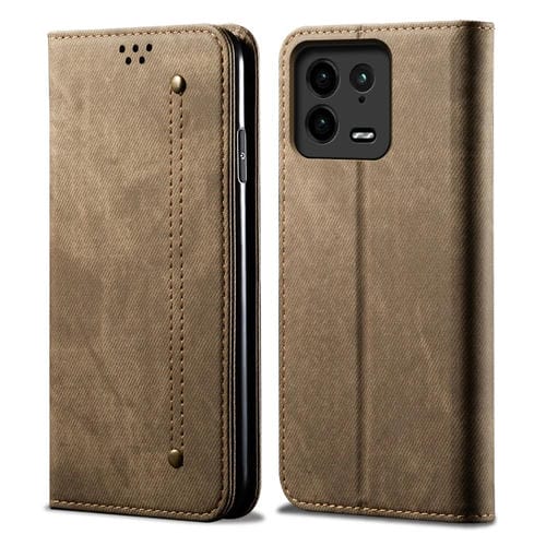Para Xiaomi 13 Pro Funda de Cuero con Textura de Mezclilla para Teléfono (Caqui)