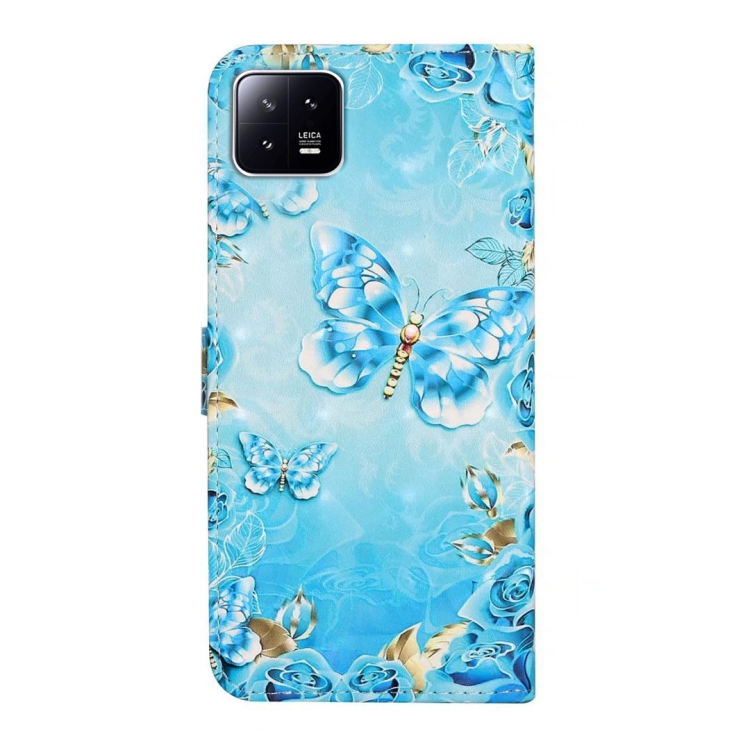 Para Xiaomi 13 Pro Funda de Teléfono de Cuero con Dibujo 3D En Relieve al Óleo (Mariposas Azules)