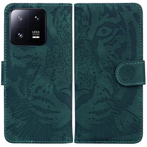 Para Xiaomi 13 Pro Funda de Teléfono de Cuero con Estampado de Tigre En Relieve (Verde)