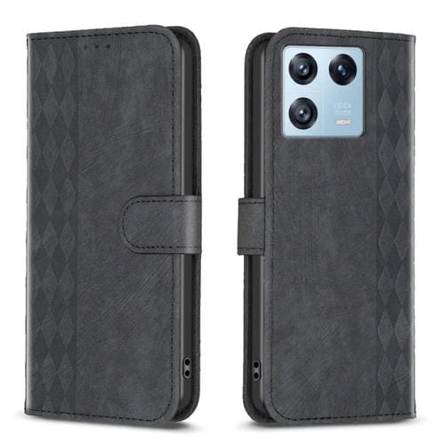 Para Xiaomi 13 Pro Funda de Teléfono de Cuero En Relieve a Cuadros (Negro)