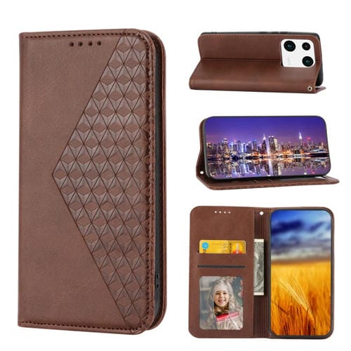 Para Xiaomi 13 Pro Funda de Teléfono de Cuero Magnético con Textura de Pantorrilla Cúbica (Marrón)