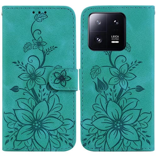Para Xiaomi 13 Pro Lily Funda de Teléfono de Cuero En Relieve (Verde)