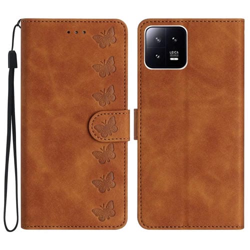 Para Xiaomi 13 Pro Seven Butterflies Caja de Teléfono de Cuero En Relieve (Marrón)