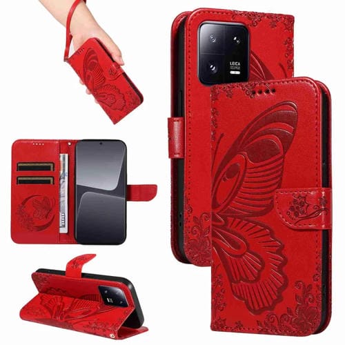 Para Xiaomi 13 Pro Swallowtail Butterfly Funda de Cuero para Teléfono En Relieve (Rojo)