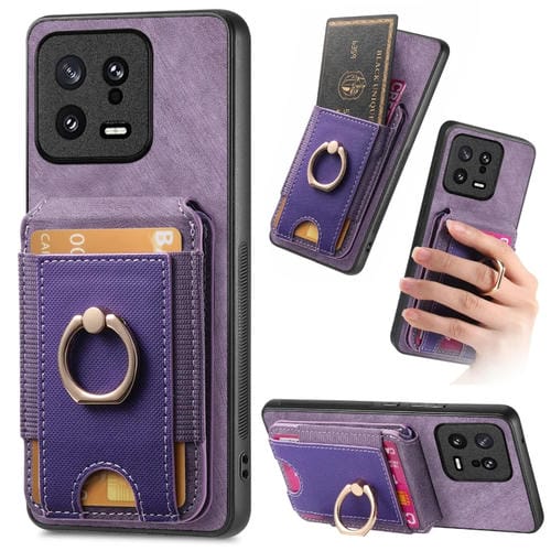 Para Xiaomi 13 Retro Splitable Magnetic Stand Card Bag Funda de Cuero para Teléfono (Púrpura)