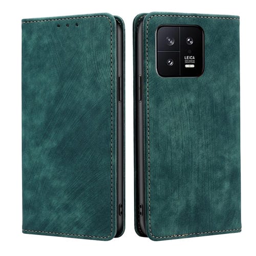 Para Xiaomi 13 Rfid Funda de Teléfono de Cuero Magnético con Cepillo Antirrobo (Verde)