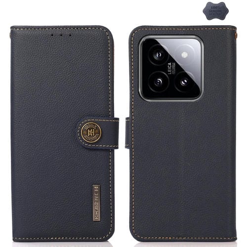 Para Xiaomi 14 Khazneh Custer Texture Rfid Funda De Cuero Genuino Para Teléfono (Azul)