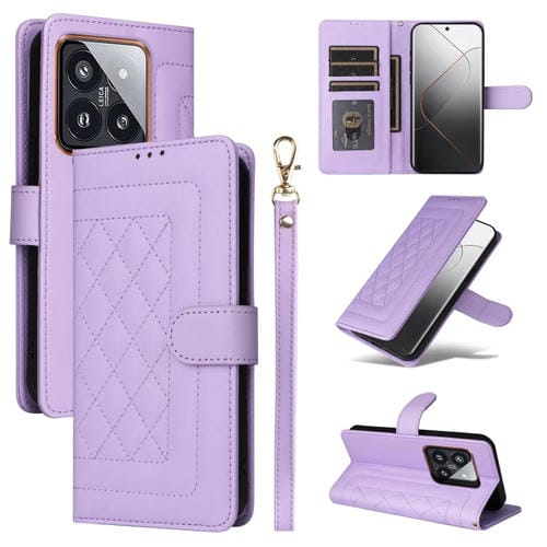 Para Xiaomi 14 Pro 5G Diamond Lattice Funda De Cuero Para Teléfono Con Tapa (Púrpura Claro)