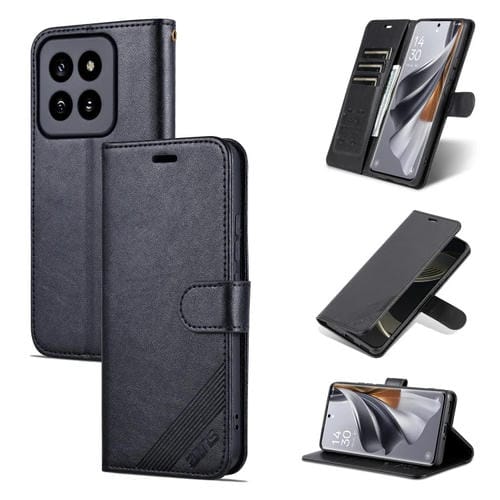 Para Xiaomi 14 Pro Azns Funda De Cuero Con Tapa Con Textura De Piel De Oveja (Negro)